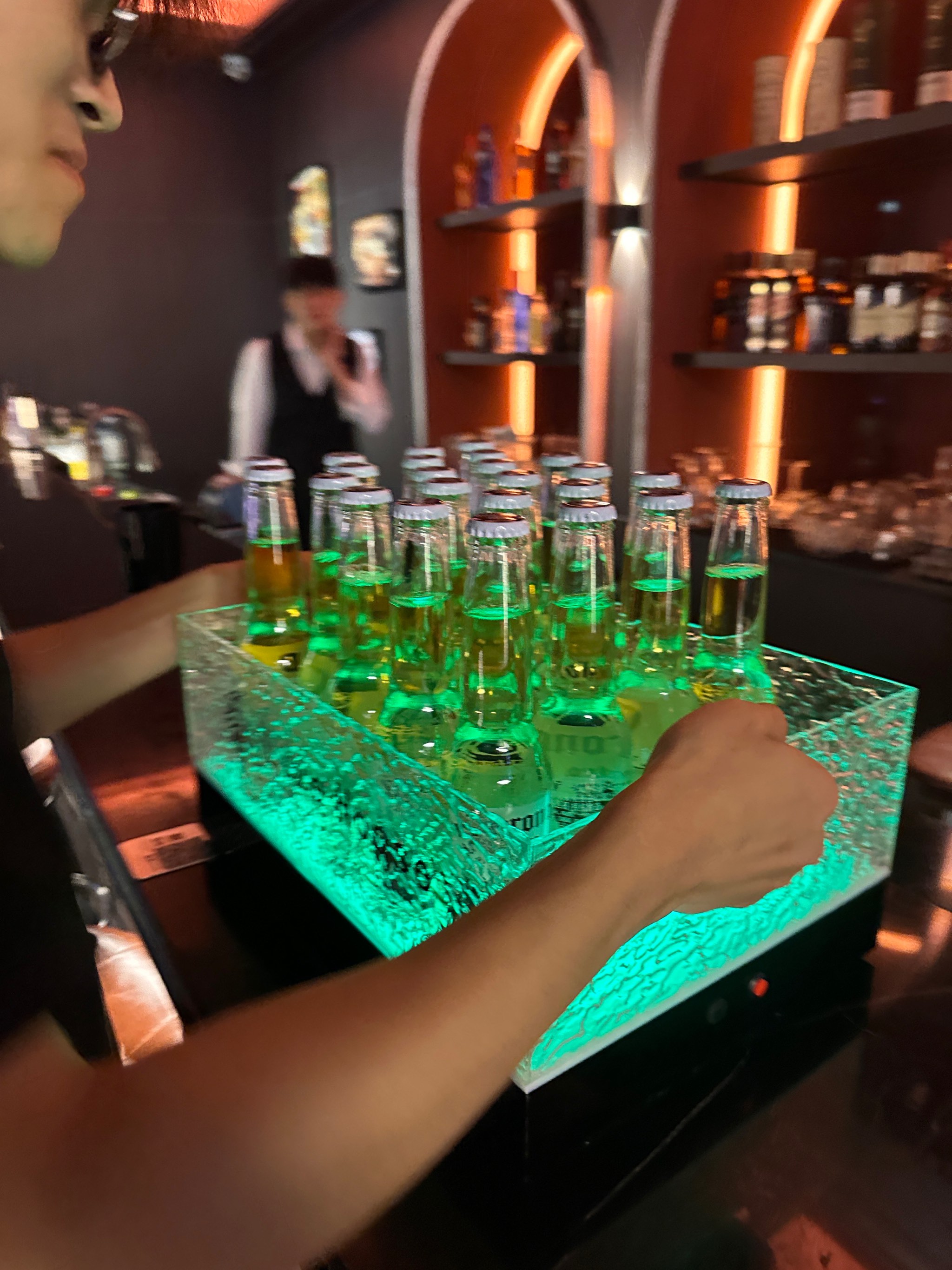 低端场商务KTV装修风格时尚简约,设施齐全,音响效果一流,让您尽情享受音乐的魅力。精心调配的美食饮品更是为您的聚会增添色彩,让您在欢声笑语中度过美好时光。